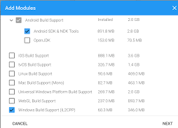 - Choose the modules you want to add to your Unity installation. Common modules include different platform build supports (Android, iOS, etc.) and additional features.