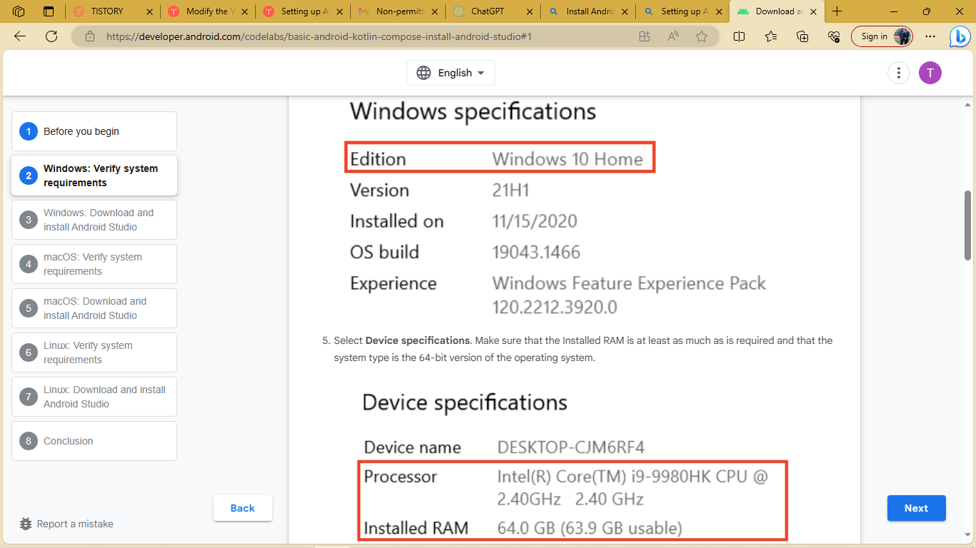 System Requirements for Android Studio 4.x:
