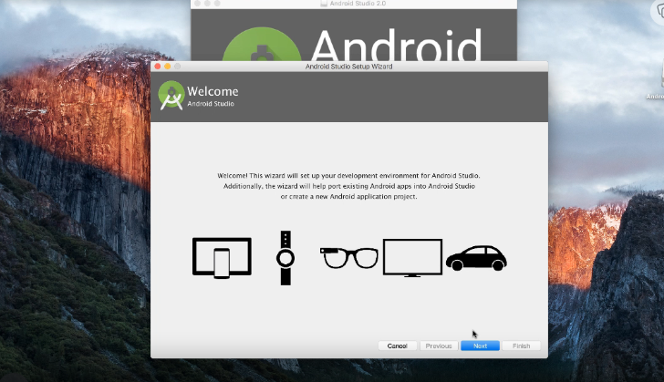 On the first run, Android Studio will prompt you to install the Android SDK and set up the development environment.